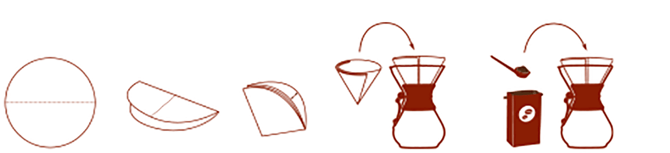 The original CHEMEX® Bonded filter circle brings us back to a time when crafting your cup of coffee began with the simple step of folding the thick paper before placing it in the carafe. A time honored tradition, a brief moment to connect, one more way to make this brew, uniquely yours.