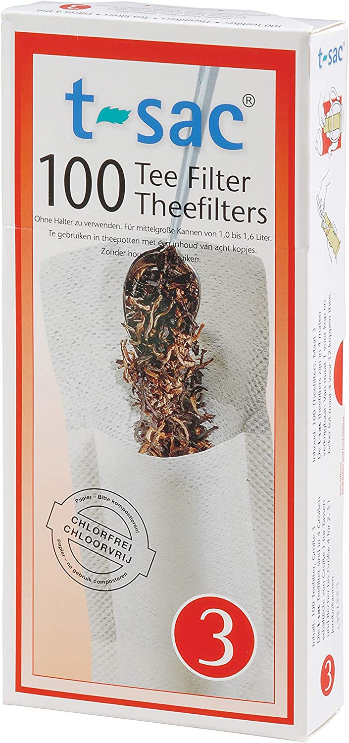 Once tea is steeped to desired strength, discard the T-Sac. Great for steeping all types of tea, including black tea, oolong tea, green tea, chai, chamomile and other herbal tea. Or use for mulling spices for cooking and baking, or make hot apple cider, spiced wine, and other drink recipes with mulled spices. Just fill with aromatic spices instead of loose tea. T-Sac Tea Filter Bags are user friendly and disposable for convenience and easy cleanup. Made in Germany from all-natural, unbleached paper with no chemicals or artificial ingredients to taint the flavor of the tea. Environmentally sensitive, completely biodegradable and fully compostable. Available in 4 convenient sizes to brew tea, from single servings to large teapots.