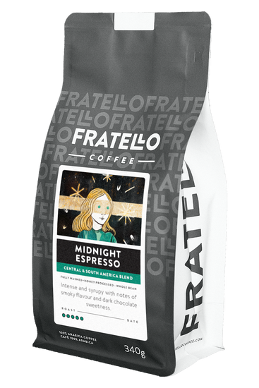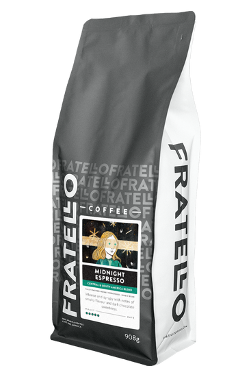 Midnight Espresso is our darkest espresso roast features Nicaraguan and Brazilian coffees, to create a thick and sophisticated blend.